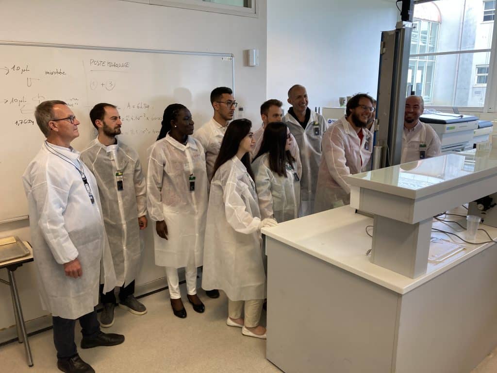 Photo du groupe devant l’INSTN Saclay, avec notre directeur Eris Gadet.