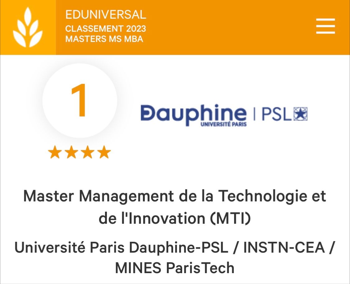 Notre master Management de la technologie et de l’innovation classé 1er par Eduniversal